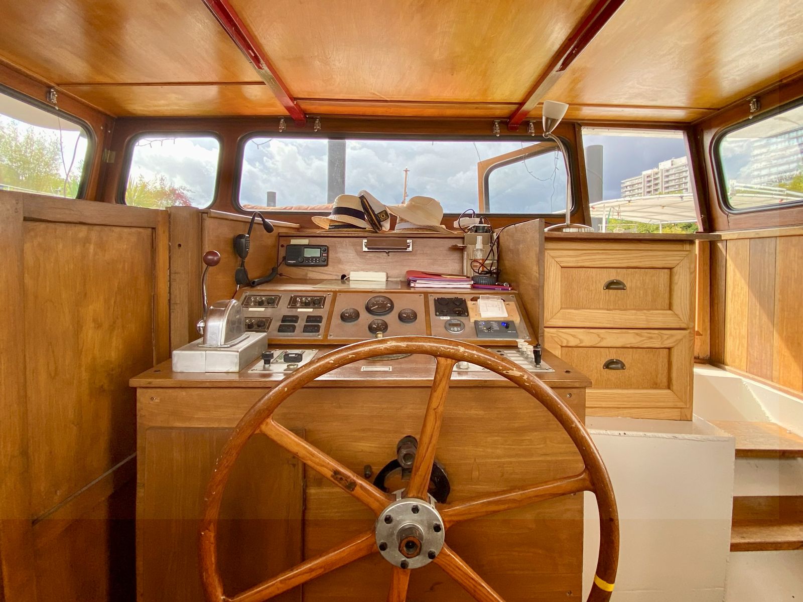 – Entrée par la timonerie avec son poste de pilotage