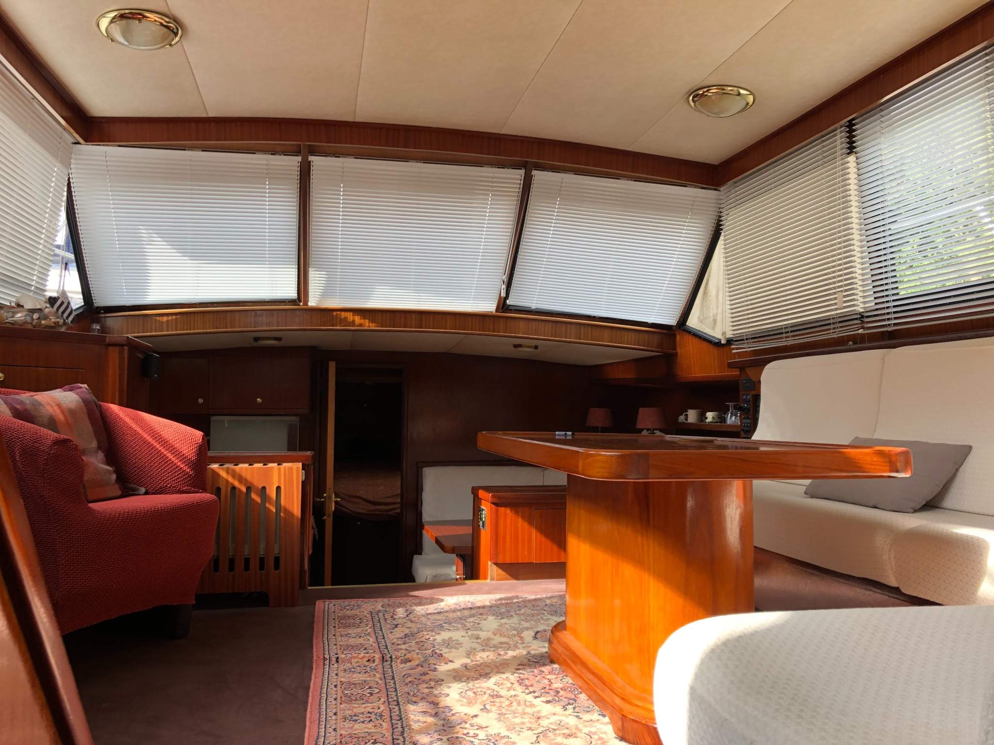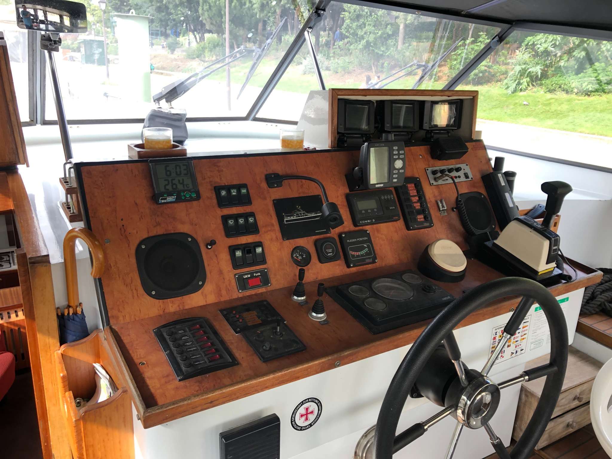 – Accès par la timonerie qui est un véritable salon de pont avec son taud rigide qui permet d’être totalement à l’abri ou de profiter du soleil